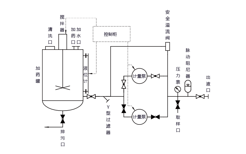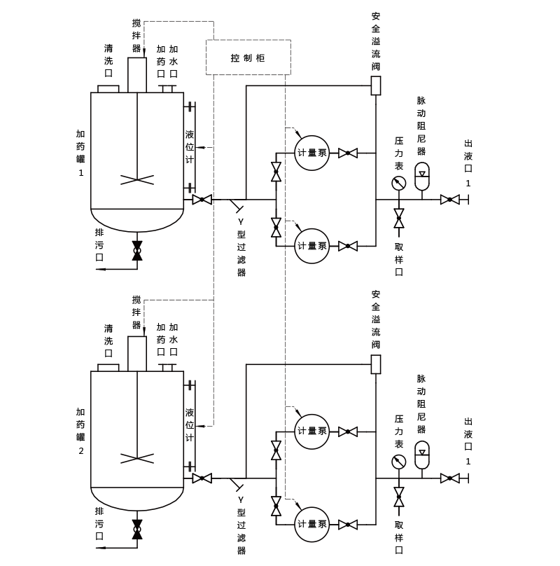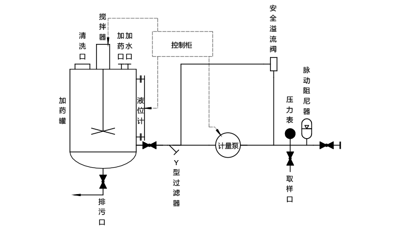 加藥裝置是機電一體化成套設(shè)備 為適應(yīng)石油、化工、冶金、煉油、天然氣、供水、熱電、制藥、食品等各個行業(yè)生產(chǎn)的自動化要求而設(shè)計生產(chǎn)向各系統(tǒng)中加入化學(xué)藥劑的成套裝置。廣泛應(yīng)用油田地面集輸、脫水處理、造紙、水處理、電力等行業(yè)投加酸、堿、鹽、脫水劑、殺菌劑、絮凝劑、緩蝕劑等藥劑。 裝置具有結(jié)構(gòu)緊湊,體積小,耐腐蝕,耗能低,操作維護(hù)方便。有儲存藥劑,混合和外輸?shù)墓δ堋?裝置核心部件——計量泵為本公司研制生產(chǎn)的高精度泵,流量最高50立方,壓力最高50MPa。 裝置部件可選用304/316不銹鋼、碳鋼金屬襯高分子材料、工程塑料凳。 溶液箱容積范圍0.5 - 20立方。 可實現(xiàn)手動、自動,遠(yuǎn)程、就地等控制方式。 可依據(jù)用戶要求設(shè)計制造。