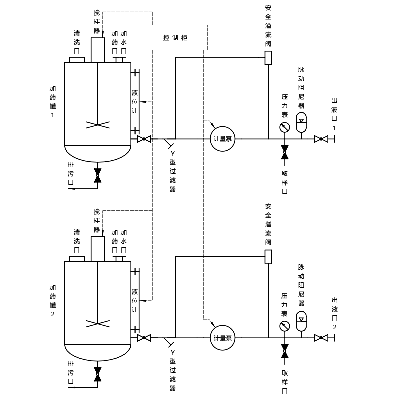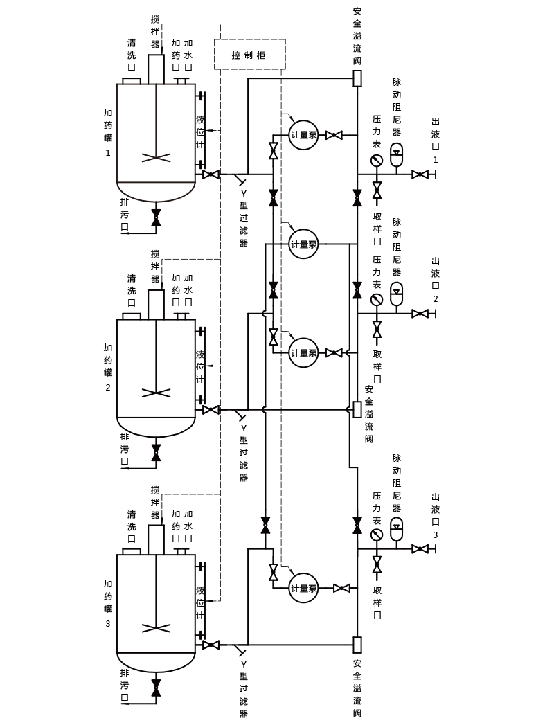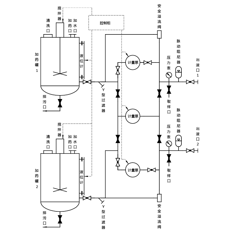 為適應(yīng)石油、化工、冶金、煉油、天然氣、供水、熱電、制藥、食品等各個行業(yè)生產(chǎn)的自動化要求而設(shè)計生產(chǎn)向各系統(tǒng)中加入化學(xué)藥劑的成套裝置。廣泛應(yīng)用油田地面集輸、脫水處理、造紙、水處理、電力等行業(yè)投加酸、堿、鹽、脫水劑、殺菌劑、絮凝劑、緩蝕劑等藥劑。