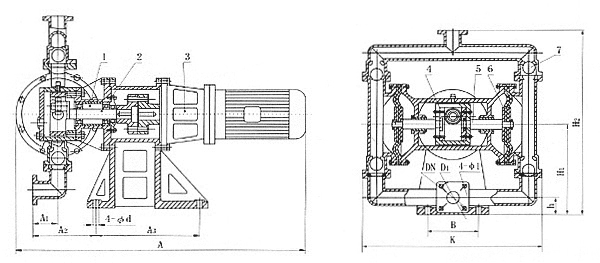 ◆ 根據(jù)不同介質(zhì),隔膜分為氯丁橡膠、氟橡膠、丁腈橡膠、四氟乙烯,完全可以滿足不同用戶的需要。過流部件也可根據(jù)用戶要求,分為鐵、不銹鋼、鋁合金,電機(jī)分為普通型和防爆型